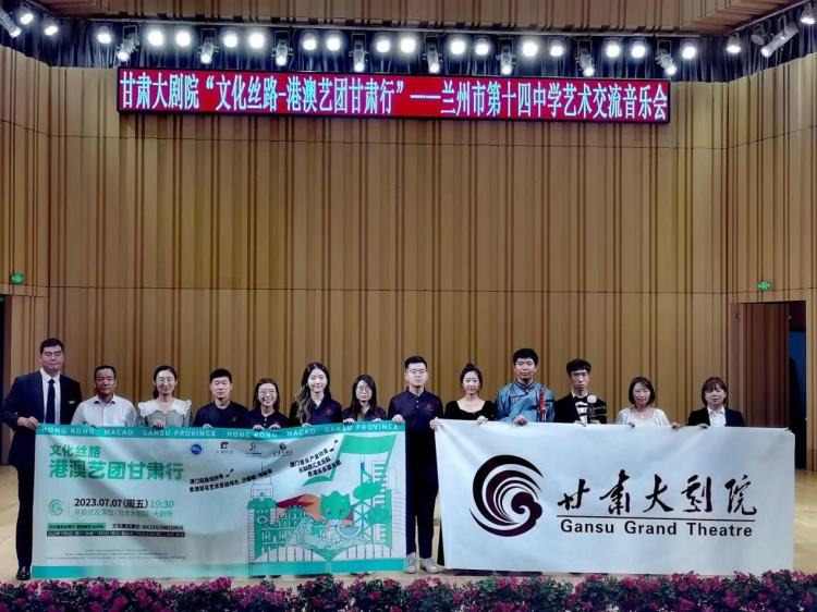 當晚,隨快閃活動熱度未減,本會亦於「蘭州市第十四中學」進行一場藝術交流音樂會。與「蘭州市第十四中學」的學生同台獻藝,本會一行五人接連演奏多首廣東音樂,當地學生亦奏起美妙樂曲,贏得現場陣陣熱烈掌聲。