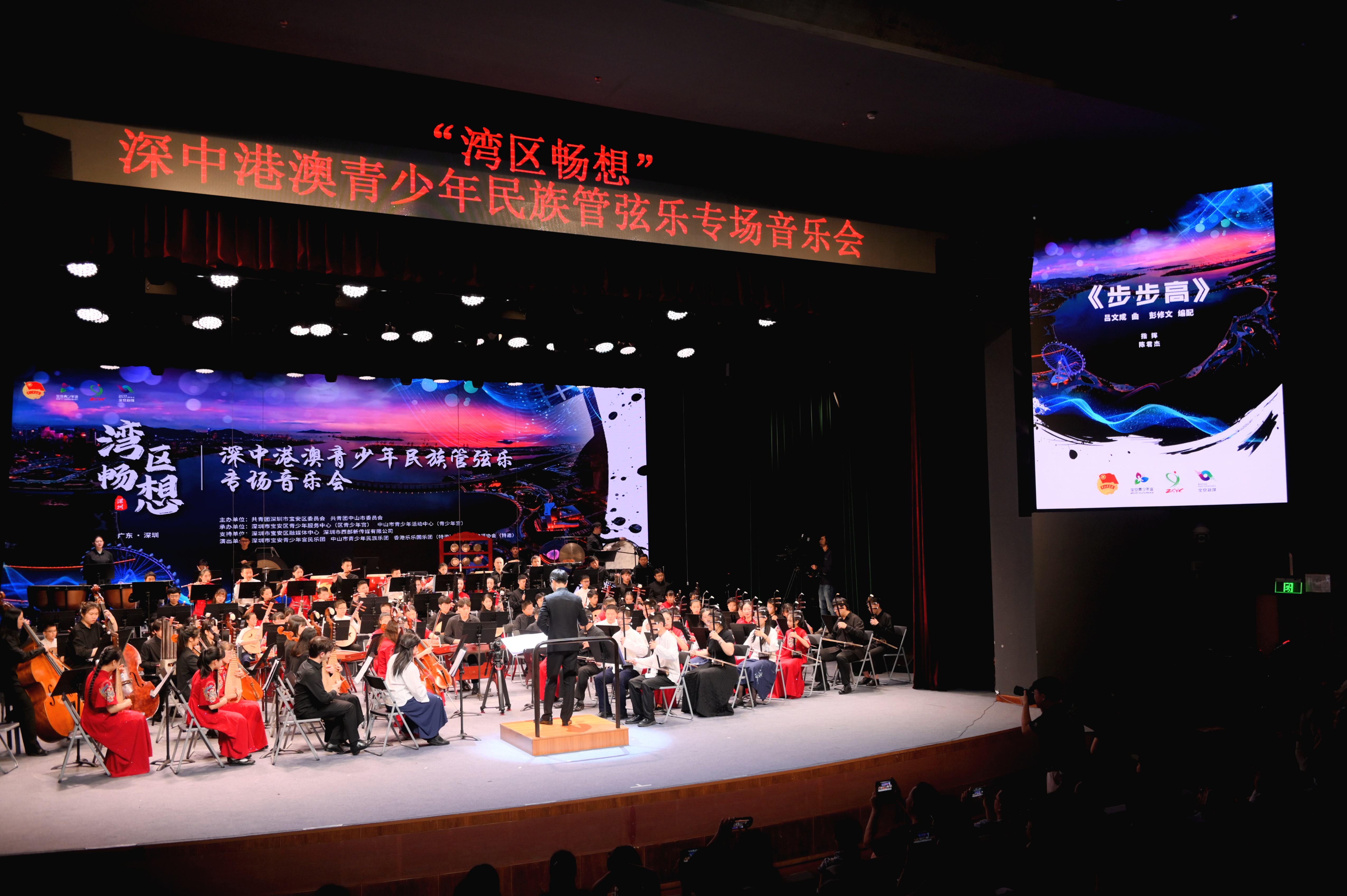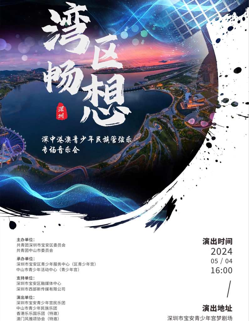 5月3-4日,「灣區暢想」中深港澳青少年民族管弦樂慈善音樂會在中山市文化藝術中心大劇場及深圳市寶安青少年宮夢劇場奏響。