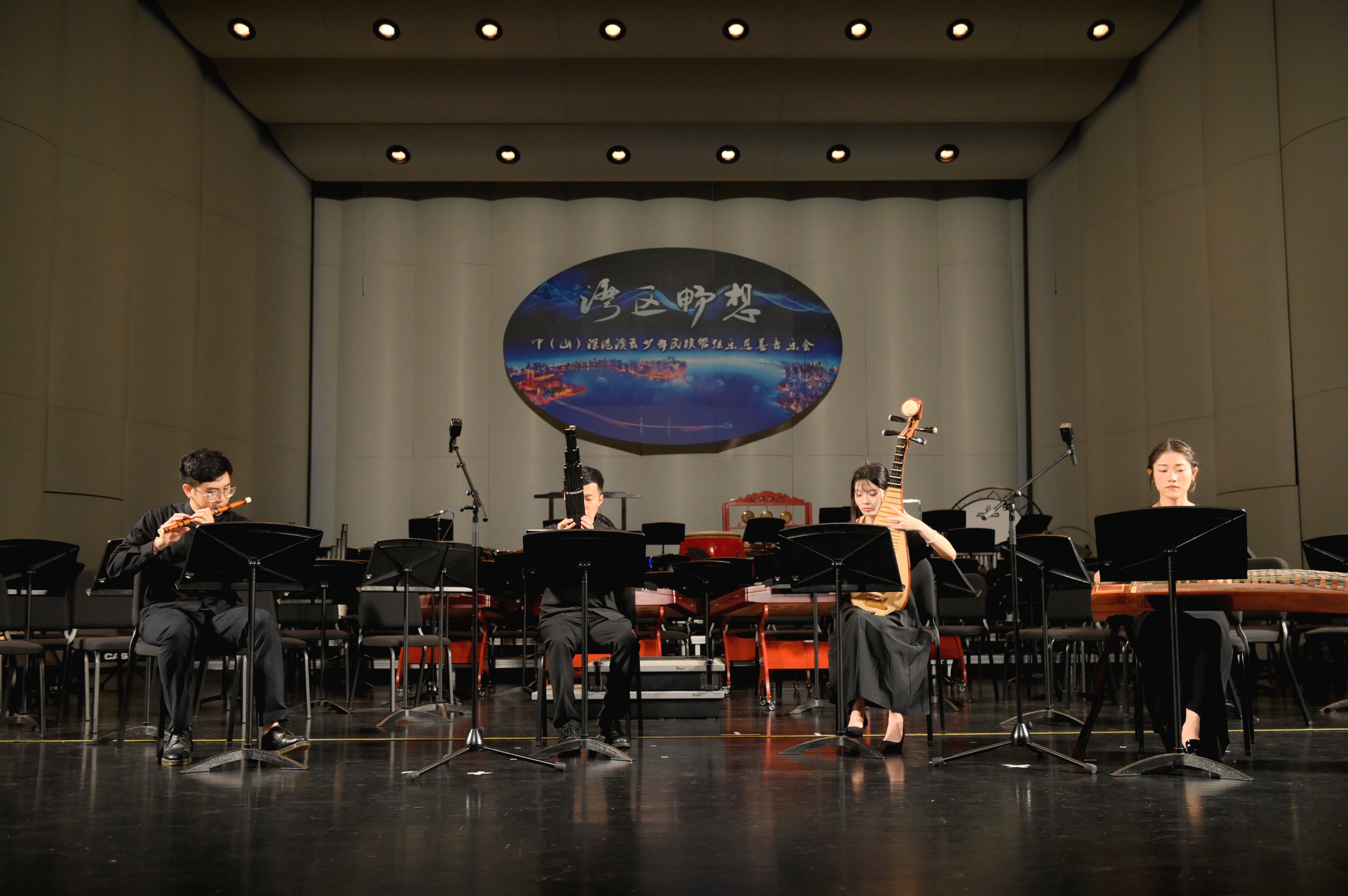 “奏民族管弦之音,築美好灣區未來。在粵港澳大灣區超級工程──深中通道即將開通之際,一連兩日的民族管弦樂慈善音樂會在中山、深圳兩地澎湃奏響,中深港澳四地樂手以激昂旋律與全新面貌為灣區觀眾呈現了一場灣區共融的民族管弦樂盛宴。